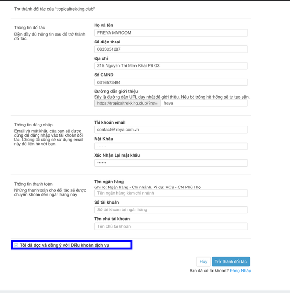 Bước 4: Cập nhật thông tin, quản lý doanh thu và hoa hồng thì truy cập link NÀY. Màn hình quản lý dành cho trekker hiện tại sẽ là: